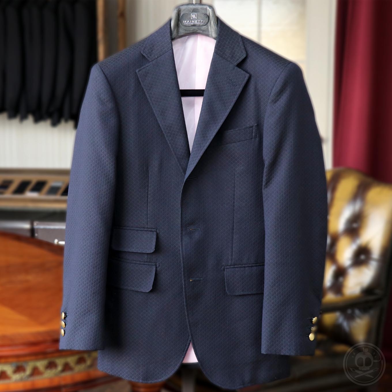 ただ単なる紺の生地ではなく、ひし形の織柄で少し個性を出せる物を選んでくれました。