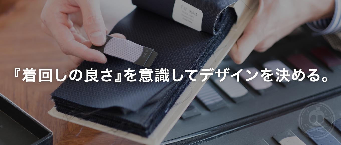 『朝に組み合わせで困らない着回しの良さ』から、ジャケットの生地やデザインを決める。