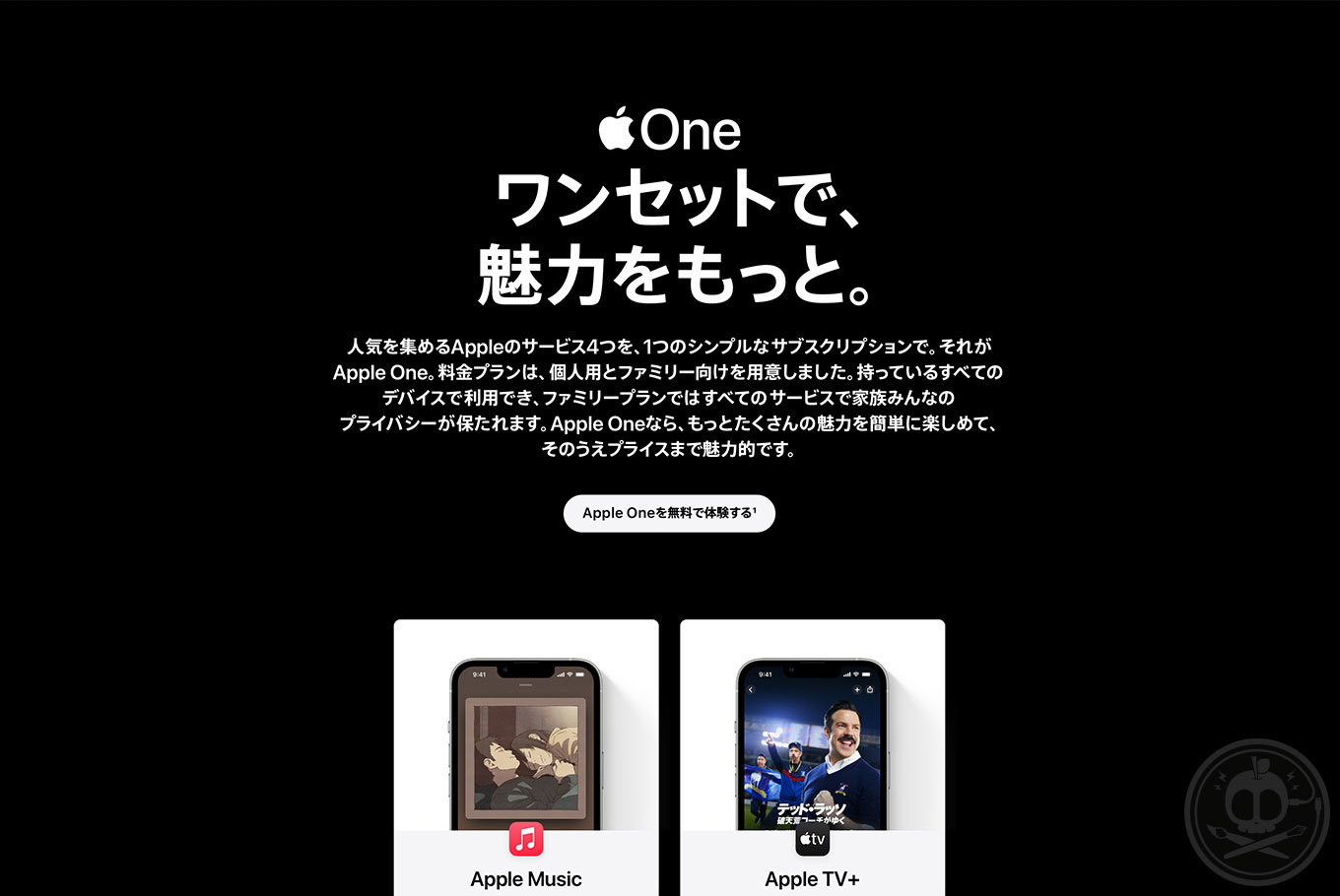 「AppleMusic」「Apple TV+」「AppleArcade」「iCloud(50GB)」をひとまとめにしたもので、個人プランで月額1,200円。